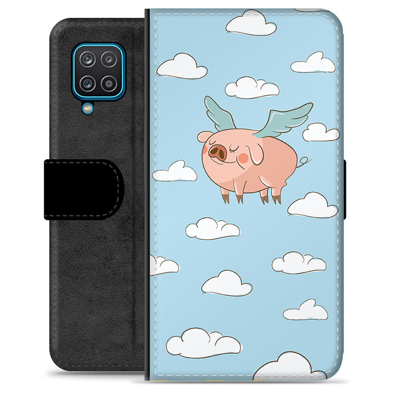 Samsung Galaxy A12 Premium Schutzhülle mit Geldbörse - Fliegendes Schwein
