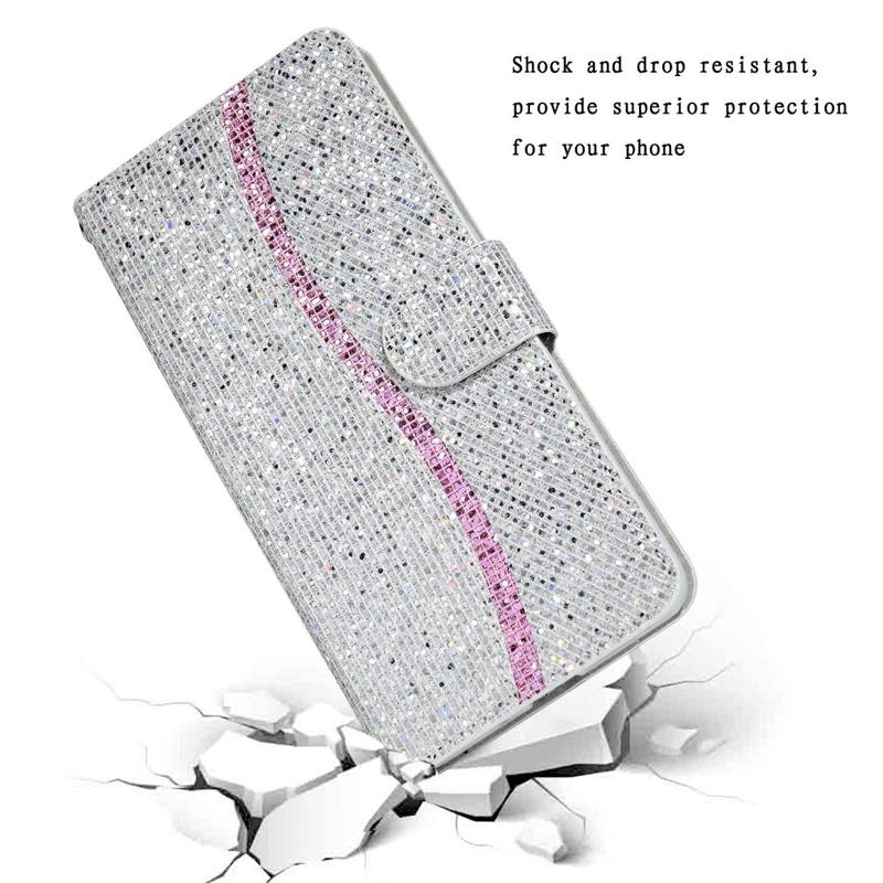 Erhöhen Sie den Stil Ihres Samsung Galaxy A16 mit dieser stilvollen Glitzer-Etui. Das glitzernde Pulver und das einzigartige Design verleihen Ihrem Gerät einen unverwechselbaren und modischen Look. Die TPU- und PU-Materialien machen die Hülle leicht und einfach zu installieren, während das praktische Design eine Brieftasche und eine Handyhülle in einer praktischen Einheit kombiniert. Der stützende Ständer ermöglicht eine freihändige Nutzung beim Anschauen von Filmen oder Lesen, und der ultrastarke Magnetverschluss hält alle Ihre wertvollen Gegenstände sicher. Mit präzisen Aussparungen für den uneingeschränkten Zugang zu Anschlüssen, Funktionstasten, Lautsprechern und Kamera bietet diese Tasche Schutz vor täglicher Abnutzung, Kratzern und Schrammen. Der praktische Trageriemen ermöglicht ein einfaches Tragen.