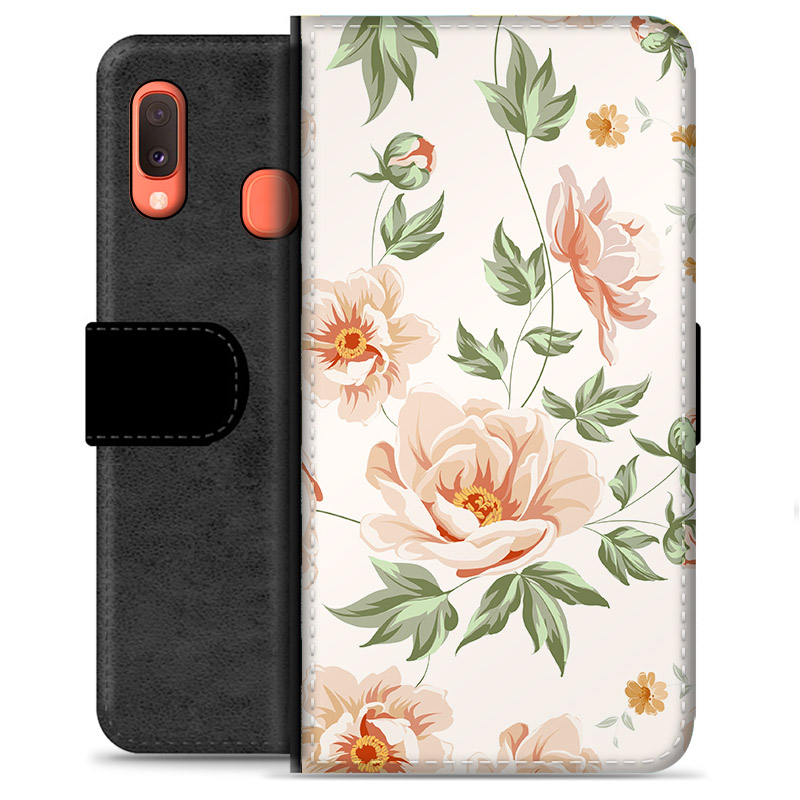 Samsung Galaxy A20e Premium Schutzhülle mit Geldbörse - Blumen