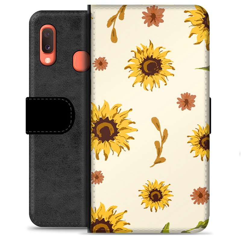 Samsung Galaxy A20e Premium Schutzhülle mit Geldbörse - Sonnenblume