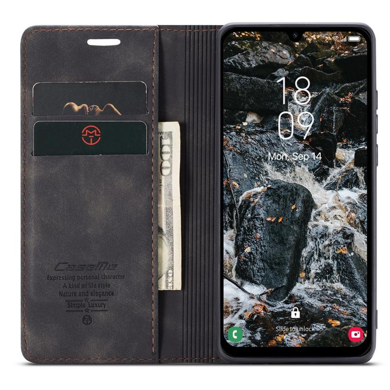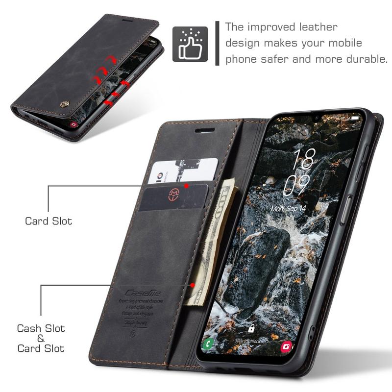 Tragen Sie mit dem Samsung Galaxy A25 Ihre wichtigsten Karten und Ihr Bargeld mit sich, dank dieser Caseme 013 Series Brieftaschenhülle!