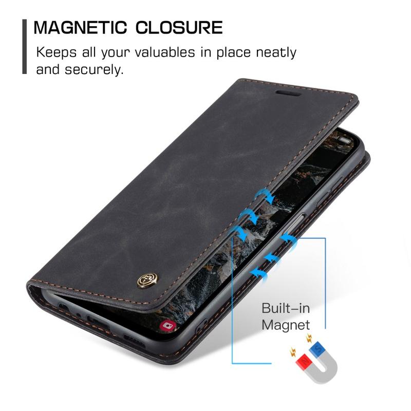 - Eingebaute Magnete halten die Caseme 013 Series Wallet-Hülle geschlossen