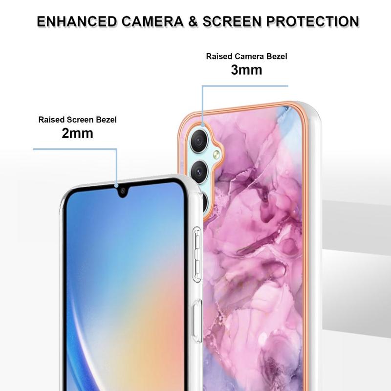 Samsung Galaxy A25 Galvanisierte IMD TPU-Hülle mit Marmormuster - Blau / Rosa