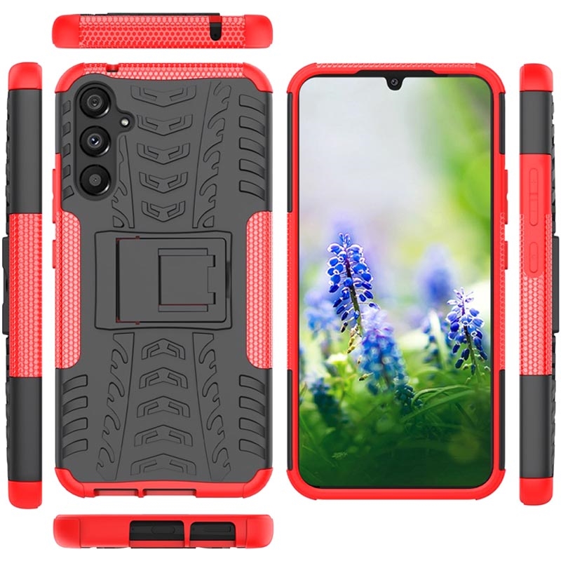 Stylische Anti-Rutsch-Hybridhülle mit Standfunktion für Samsung Galaxy A34 5G. Das Anti-Rutsch-Design verhindert, dass Ihr Samsung Galaxy A34 5G aus Ihren Händen fällt, und es gibt gepanzerte Ecken, um Ihr Samsung Galaxy A34 5G vor Beschädigungen zu schützen, wenn es herunterfällt. Das Gehäuse aus Kunststoff und TPU-Materialien ist solide und langlebig.