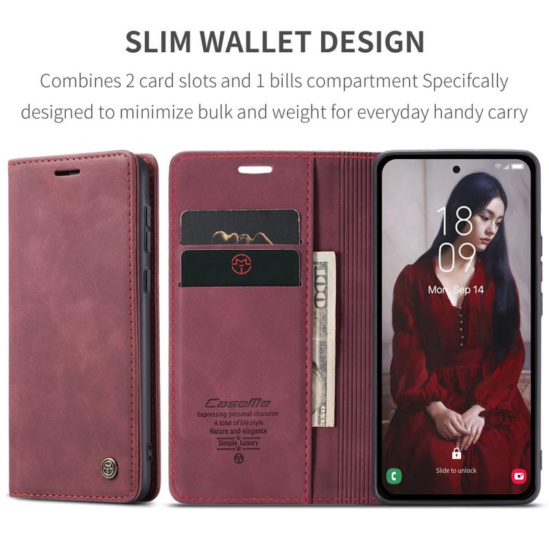 Tragen Sie mit dem Samsung Galaxy A35 Ihre wichtigsten Karten und Ihr Bargeld mit sich, dank dieser Caseme 013 Series Brieftaschenhülle!