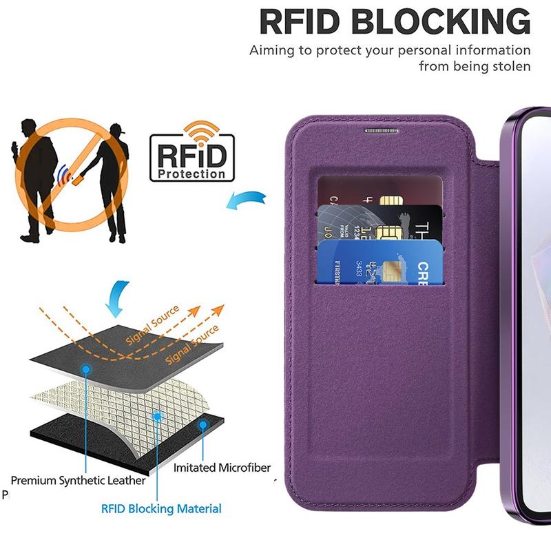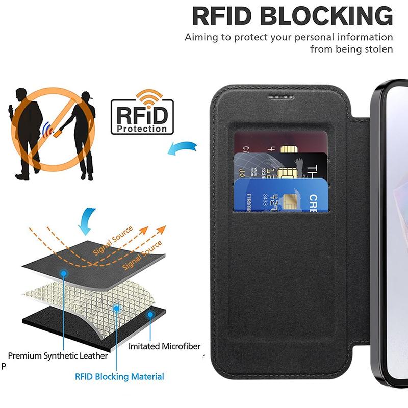 - Merkmale: Kartenschlitz, starker Magnet für automatisches Schließen, RFID-Blockierungstechnologie, eingebauter Magnetring