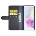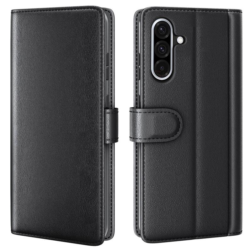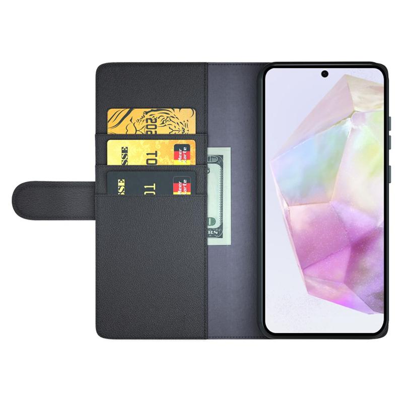 Samsung Galaxy A36/A56 Lederhülle mit Geldbörse und Ständer - Schwarz