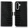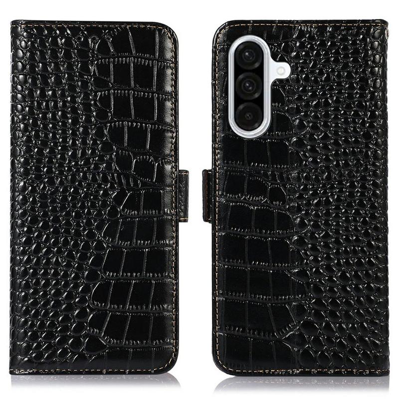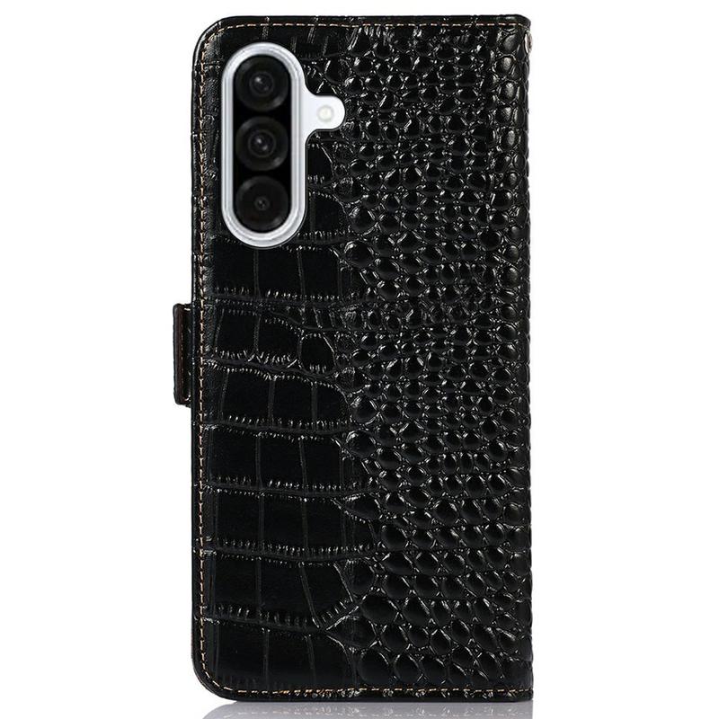 Samsung Galaxy A36 Crocodile Serie Lederhülle mit Geldbörse mit RFID - Schwarz