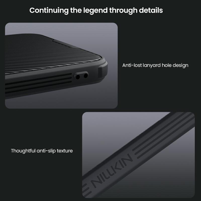 Genießen Sie zusätzliche Privatsphäre und Schutz mit der CamShield Pro-Hybridhülle von Nillkin. Durch die Kombination von starrem Kunststoff und TPU verhindert die Kameraabdeckung Kratzer und schützt gleichzeitig Ihr Samsung Galaxy A36 vor täglicher Abnutzung.