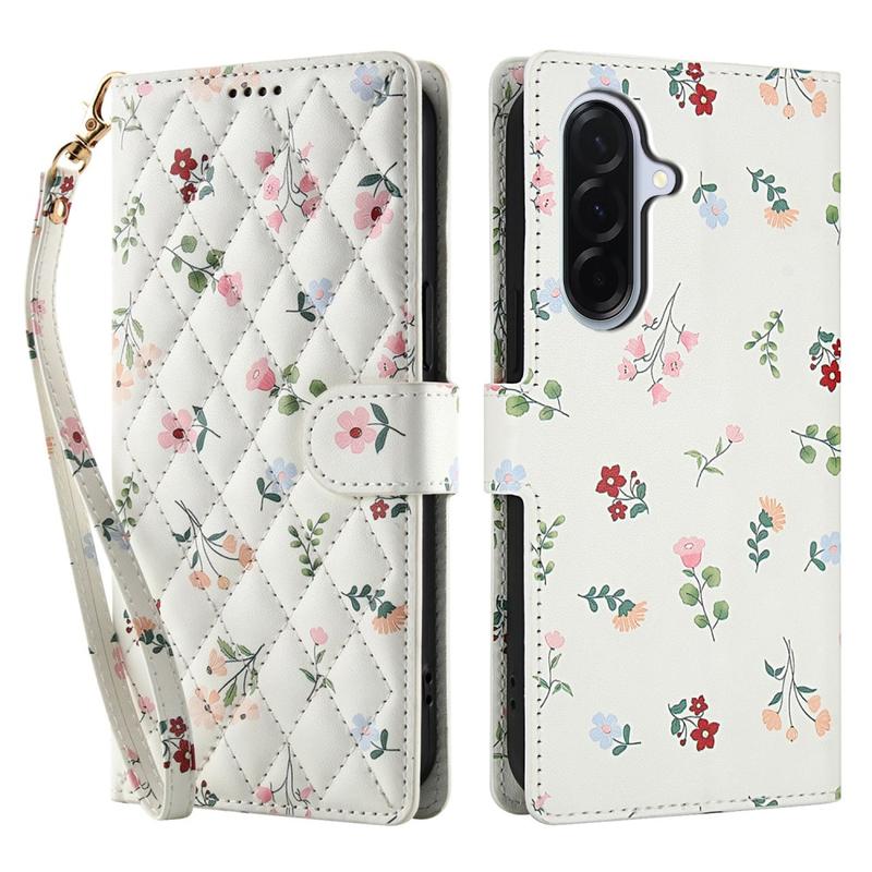 Erfrischen Sie Ihr Samsung Galaxy A37 mit einem schlanken Flip Wallet, das sicheren Schutz mit Alltagstauglichkeit verbindet. Die rautenförmig genähte Vorderseite und das winzige Blumenmuster sorgen für eleganten Stil, während eine weiche TPU-Schale Stürze abfedert und eine Polyurethanhülle vor Kratzern schützt. Mehrere Kartenfächer, ein Fach für Bargeld und eine mitgelieferte Handschlaufe machen diese Tasche zu einer Komplettlösung für unterwegs, auf Reisen oder beim Ausgehen.