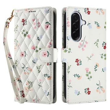 Rhombisches Blumen Wallet Hülle für Samsung Galaxy A37 - mit Riemen und Kartenfächern