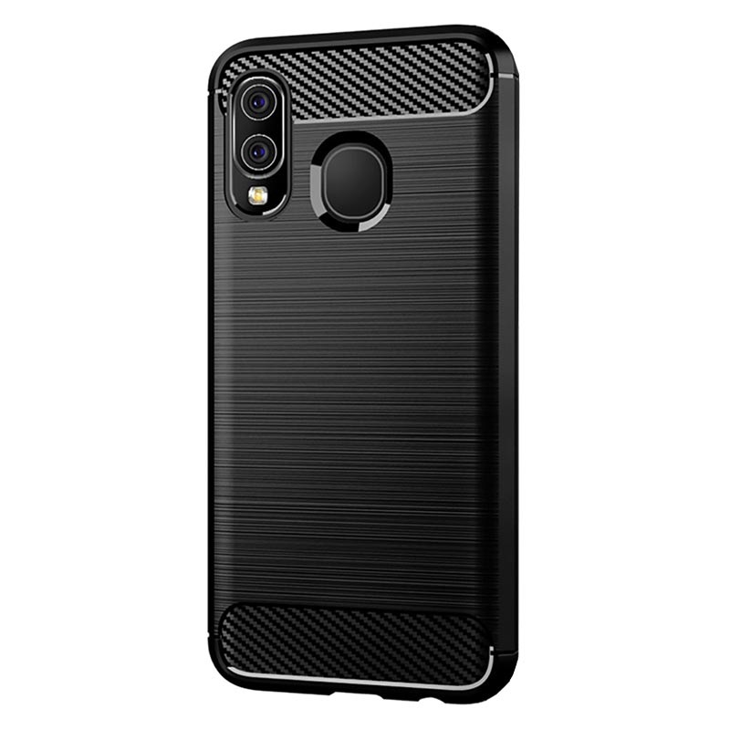 Samsung Galaxy A40 Angeraute TPU Hülle - Karbonfaser - Schwarz