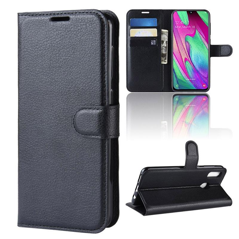 Diese hochwertige Brieftaschenhülle für Samsung Galaxy A40 verbessert das Benutzererlebnis dank der integrierten faltbaren Rückseite und mehreren Taschen. Hergestellt aus hochwertigem Polyurethan mit integrierter stoßfester TPU-Hülle.