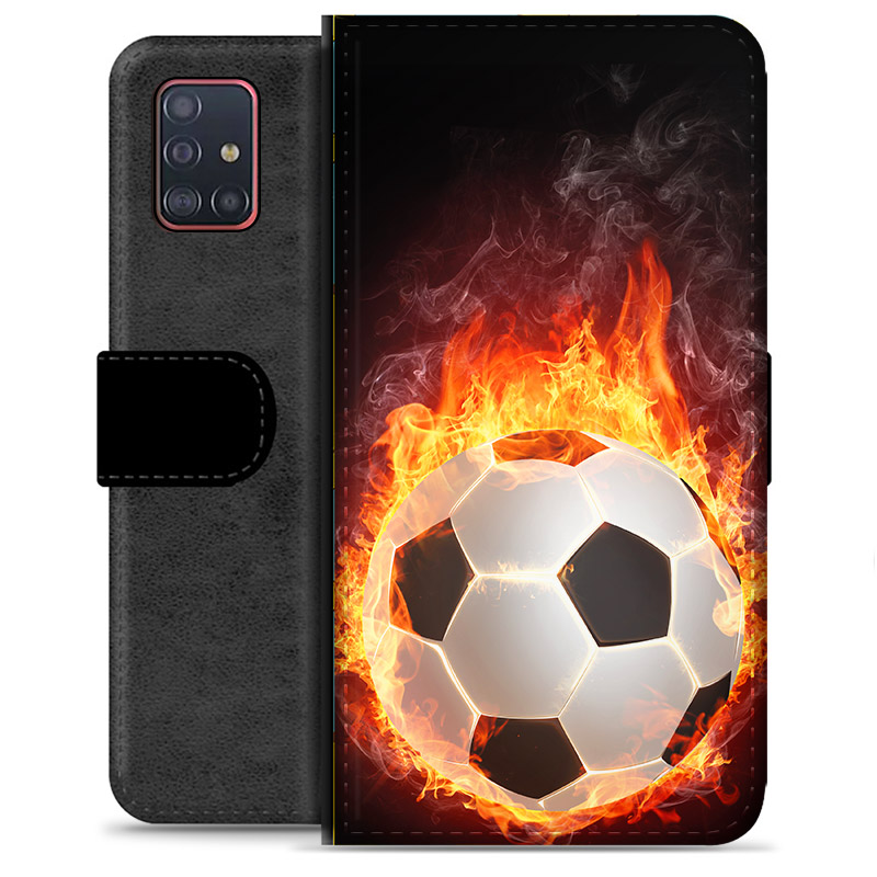 Samsung Galaxy A51 Premium Schutzhülle mit Geldbörse - Fußball Flamme