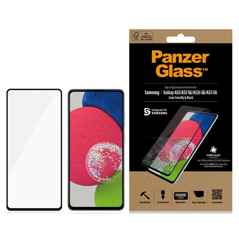 PanzerGlass Case Friendly AntiBacterial Panzerglas für Samsung Galaxy A52 5G, Galaxy A52 4G, Galaxy A52s 5G, Galaxy A53 5G