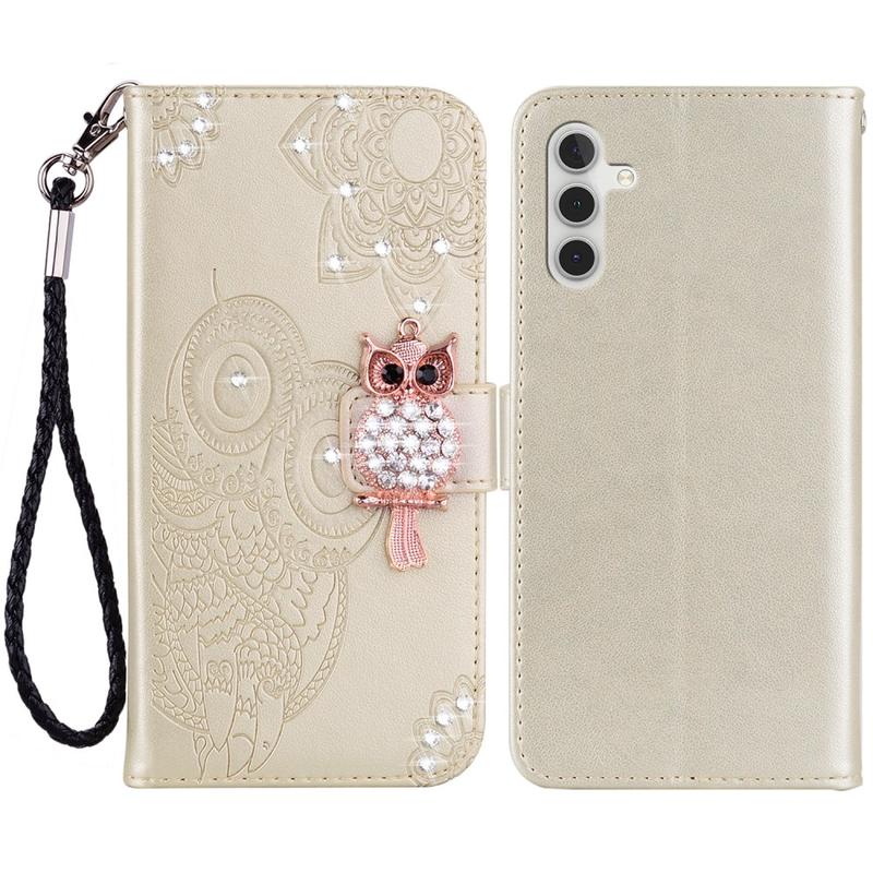 Samsung Galaxy A55 Eule Strass Wallet Case - Gold
