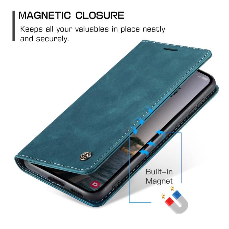 - Eingebaute Magnete halten die Caseme 013 Series Wallet-Hülle geschlossen