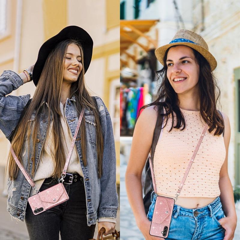 Die hochwertige Hülle aus der Stardust-Serie ist die richtige Wahl, um Ihr Samsung Galaxy A56 vor möglichen Schäden zu schützen. Es hat einen Kartenhalter auf der Rückseite mit einem Druckknopf, der großartig ist, um Ihre wichtigen Karten aufzubewahren und sicher aufzubewahren. Eine glänzende Glitzeroberfläche verleiht Ihrem Telefon einen Hauch von Glamour. Darüber hinaus wird die Hülle mit einem 150cm langen Schultergurt geliefert, mit dem Sie Ihr Samsung Galaxy A56 überall hin mitnehmen können.