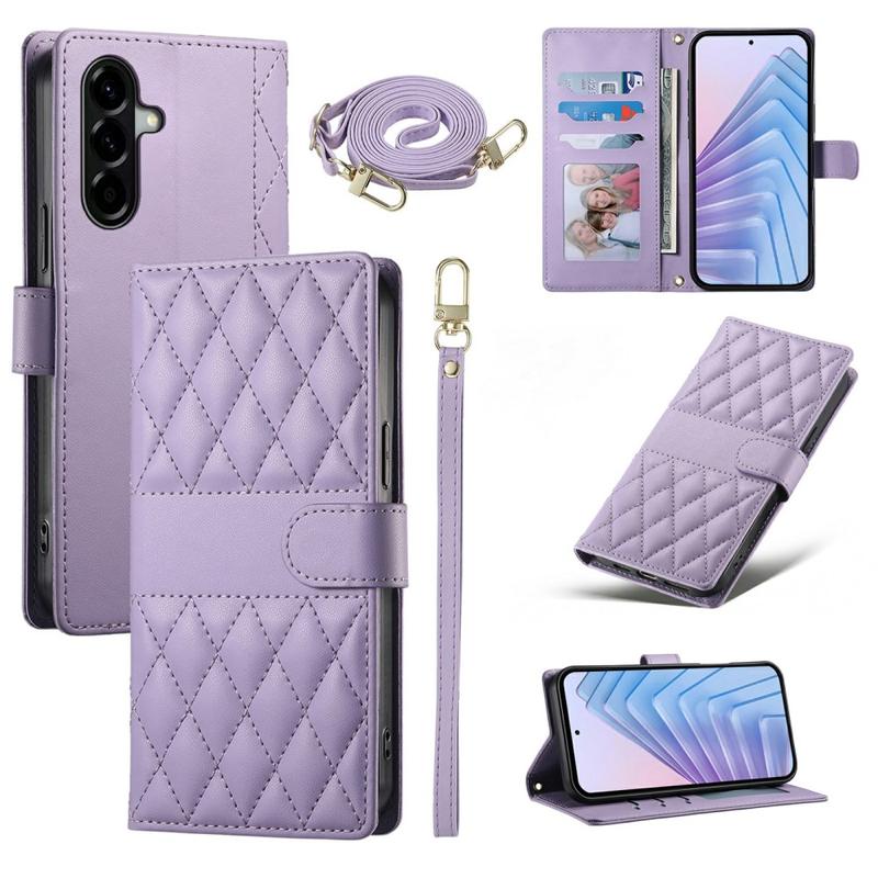 Luxus Gesteppte Wallet Hülle mit Schulter & Handgelenk Strap für Samsung Galaxy A57 - Rhombus-Muster Schutzhülle