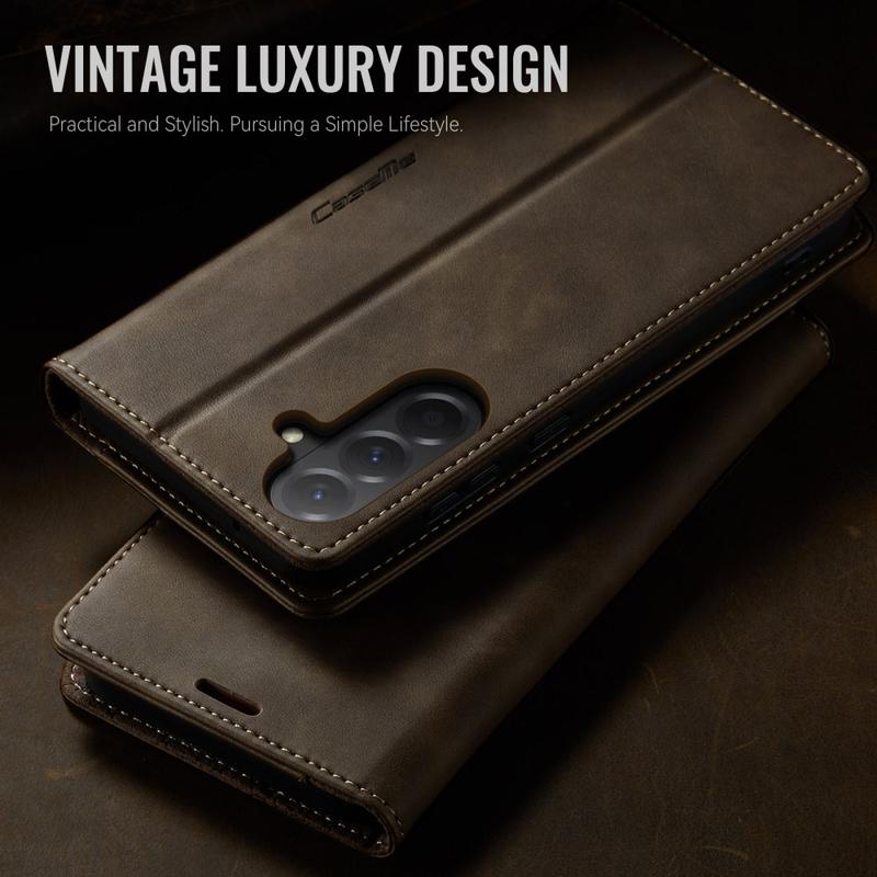 Das CASEME 033 Series Wallet Case für das Samsung Galaxy A57 ist aus Polyurethan mit Kalbslederstruktur und TPU gefertigt. Es bietet Schutz vor Kratzern, Stößen und täglicher Beanspruchung und sieht dabei elegant und hochwertig aus.
