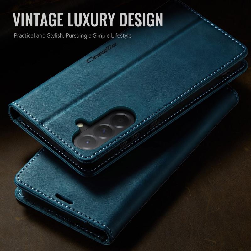 Das CASEME 033 Series Wallet Case für das Samsung Galaxy A57 ist aus Polyurethan mit Kalbslederstruktur und TPU gefertigt. Es bietet Schutz vor Kratzern, Stößen und täglicher Beanspruchung und sieht dabei elegant und hochwertig aus.