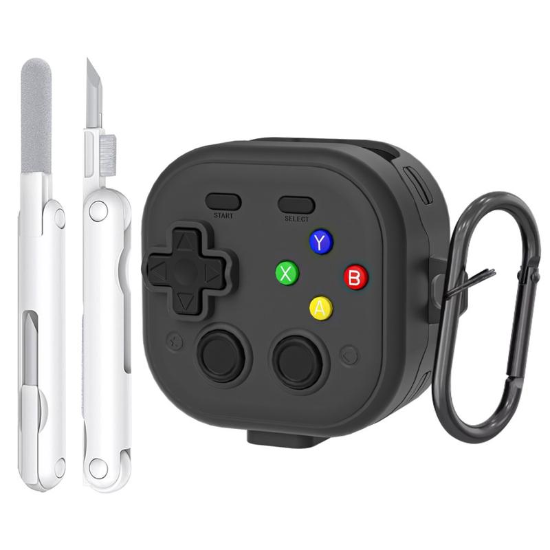 Samsung Galaxy Buds 4/4 Pro Etui im Gaming-Controller-Stil mit Karabinerhaken und Reinigungswerkzeug - Schwarz