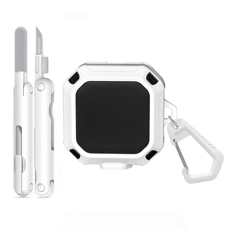Die Hülle wird mit einem praktischen Metallkarabiner geliefert, mit dem Sie Ihre Ohrhörer sicher an einem Rucksack, einer Gürtelschlaufe oder einem Schlüsselbund befestigen können, sodass sie immer griffbereit sind. Ein multifunktionaler Reinigungsstift ist ebenfalls enthalten, um Staub, Schmutz und Ablagerungen von den Ohrhörern und Ladekontakten zu entfernen und Ihr Gerät sauber und funktionsfähig zu halten. Dank präziser Ausschnitte und vollständiger Kompatibilität mit kabellosem Laden können Sie Ihre Ohrhörer aufladen, ohne die Hülle zu entfernen.