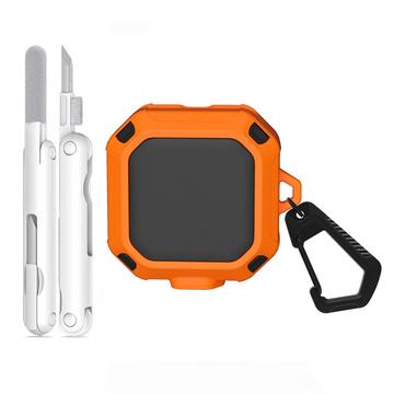 Die Hülle wird mit einem praktischen Metallkarabiner geliefert, mit dem Sie Ihre Ohrhörer sicher an einem Rucksack, einer Gürtelschlaufe oder einem Schlüsselbund befestigen können, sodass sie immer griffbereit sind. Ein multifunktionaler Reinigungsstift ist ebenfalls enthalten, um Staub, Schmutz und Ablagerungen von den Ohrhörern und Ladekontakten zu entfernen und Ihr Gerät sauber und funktionsfähig zu halten. Dank präziser Ausschnitte und vollständiger Kompatibilität mit kabellosem Laden können Sie Ihre Ohrhörer aufladen, ohne die Hülle zu entfernen.