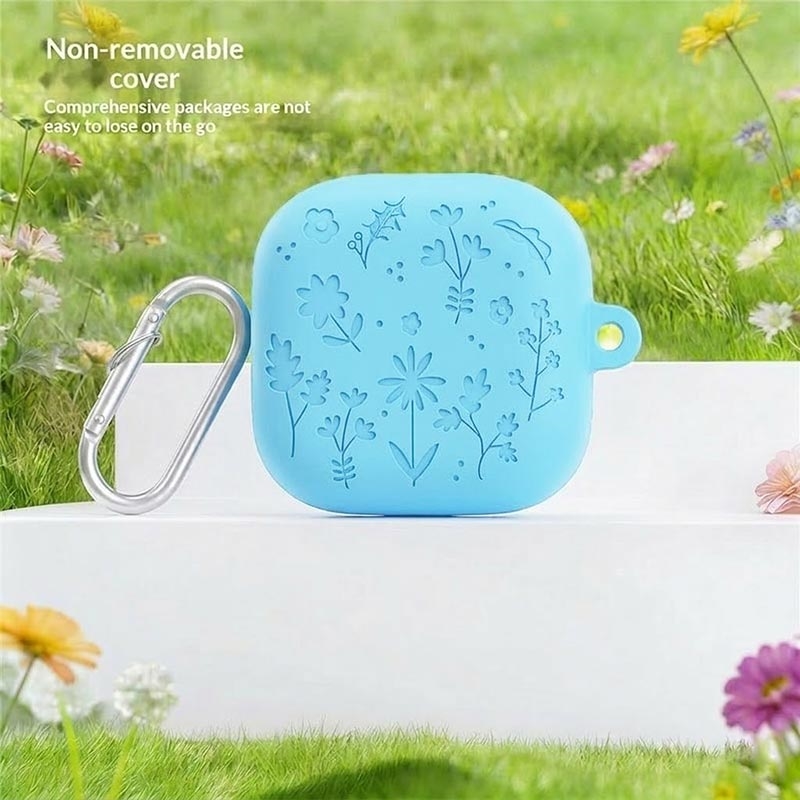 • Silikonhülle mit Blumenmuster, Reinigungsstiften und Karabinerhaken für Samsung Galaxy Buds4, Galaxy Buds4 Pro