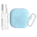 Samsung Galaxy Buds4/Buds4 Pro Silikonhülle mit Blumenmuster und Reinigungsstiften - Blau