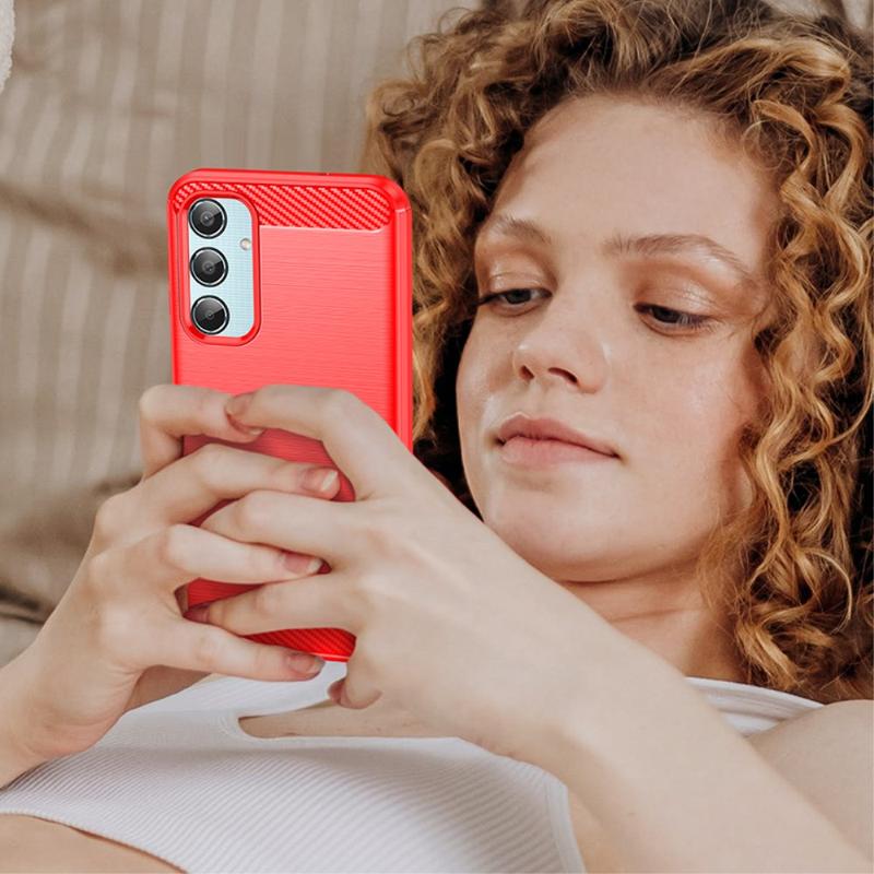 Das Brushed TPU Case schützt Ihr Samsung Galaxy M35 angemessen und verleiht ihm dank des Kohlefasermusters auf der Rückseite einen tollen Stil. Die Hülle schützt Ihr Samsung Galaxy M35 auch vor Überhitzung, indem sie die Wärme ableitet.