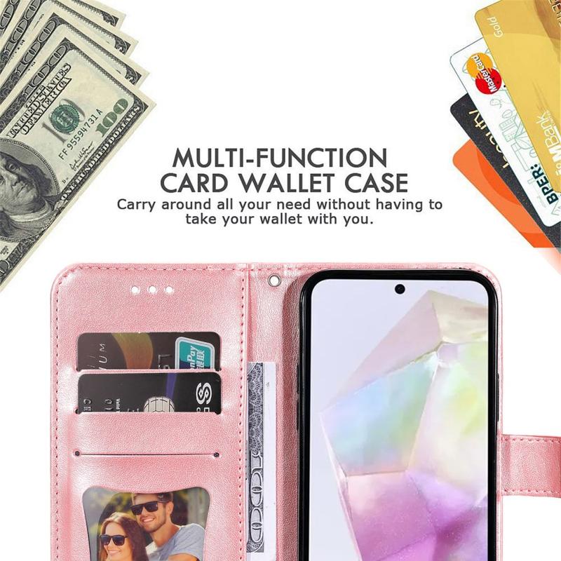 Diese einzigartige Hülle schützt das Samsung Galaxy M35 vor täglichen Kratzern und Stößen und dient gleichzeitig als Medienbeobachtungsstand. Außerdem verfügt das Gehäuse über Innentaschen für Karten und eine größere Tasche für Bargeld, so dass Sie alle Ihre Wertsachen an einem Ort aufbewahren können.