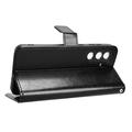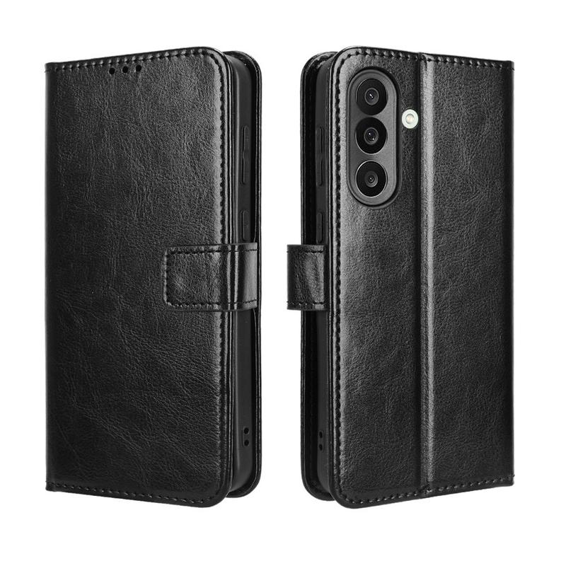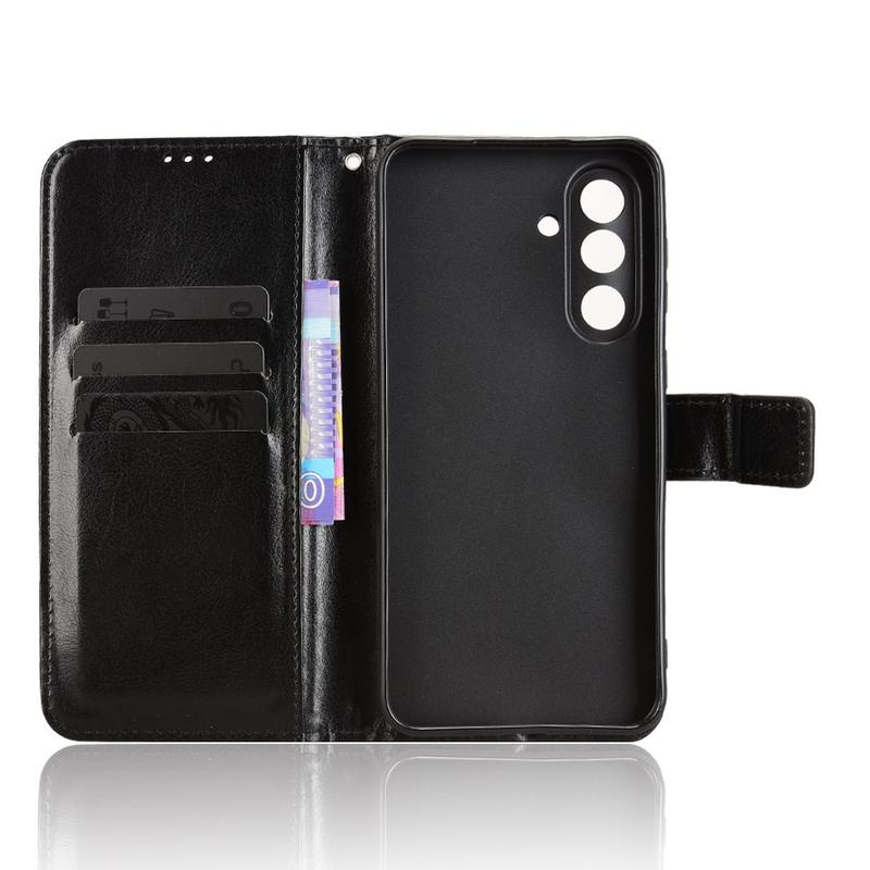 Verleihen Sie Ihrem neuen Samsung Galaxy M56 einen raffinierten Vintage-Look und ersetzen Sie gleichzeitig Ihr tägliches Portemonnaie. Die Außenseite aus Polyurethan mit Crazy-Horse-Struktur und die stoßdämpfende TPU-Schale schützen vor Stürzen und Kratzern, während clevere Fächer für Karten und Bargeld sorgen.