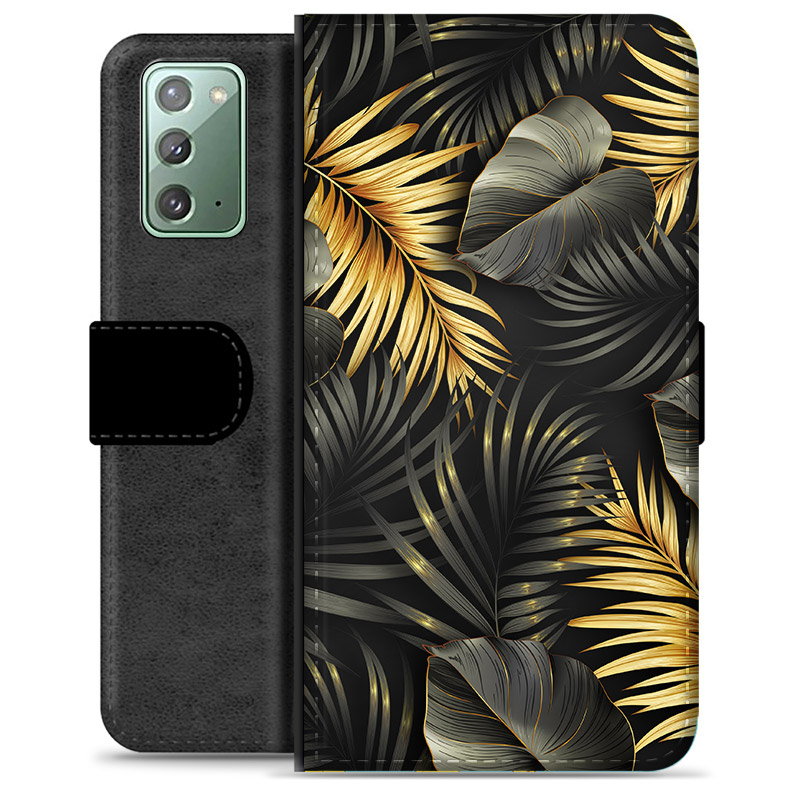 Samsung Galaxy Note20 Premium Schutzhülle mit Geldbörse - Goldene Blätter