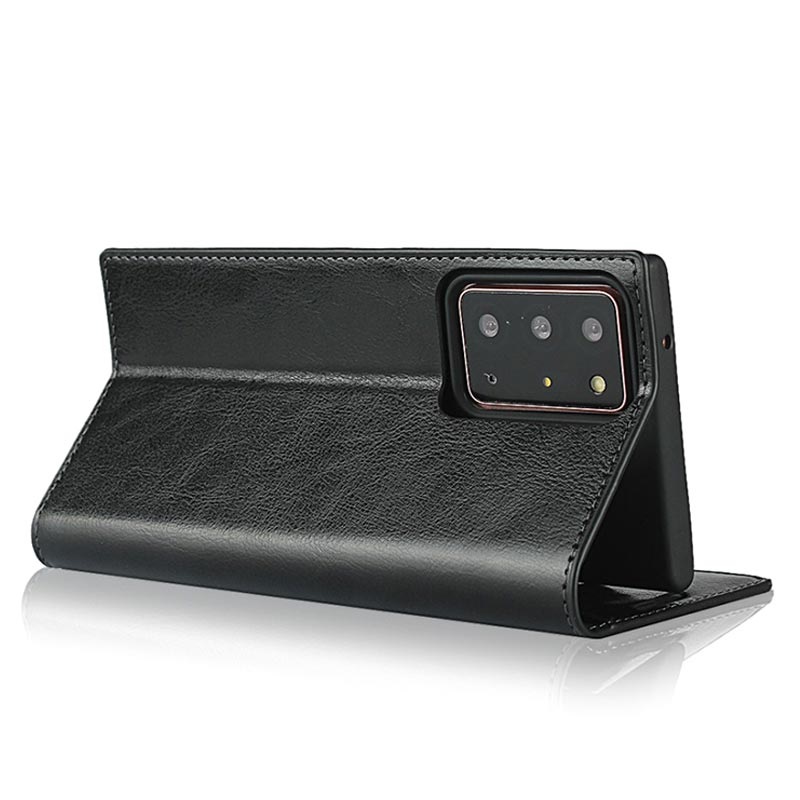Eine hochwertige, anspruchsvolle Lederhülle für Ihr Samsung Galaxy Note20 Ultra. Verleihen Sie Ihrem Telefon ein erstklassiges Aussehen und schützen Sie es gleichzeitig vor Kratzern und gewöhnlichen Beschädigungen. Diese multifunktionale Brieftasche aus weichem Leder hat Innenfächer für Karten und ein größeres Fach für Bargeld. Darüber hinaus verfügt das Samsung Galaxy Note20 Ultra Etui aus echtem Leder über einen freihändigen Betrachtungsstand und einen vorderen Ausschnitt für Gespräche bei geschlossenem Etui.