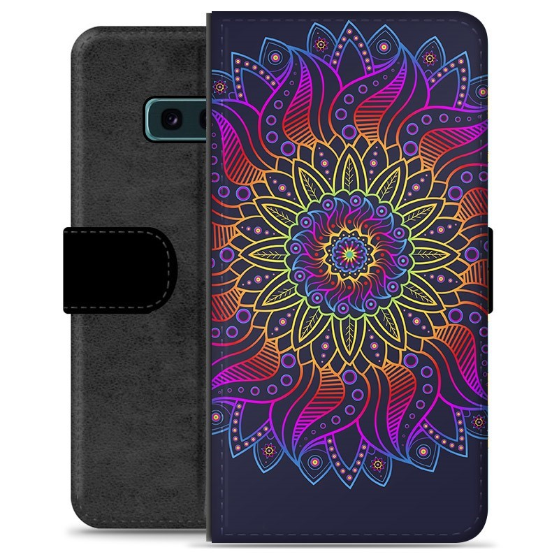 Die Samsung Galaxy S10e Premium Schutzhülle mit Geldbörse im bunten Mandala-Design vereint Stil mit Funktionalität und Schutz. Diese Schutzhülle wurde speziell für das Samsung Galaxy S10e entwickelt und bietet einen zuverlässigen Schutz für Ihr Smartphone vor Kratzern, Stößen und anderen alltäglichen Beschädigungen. Das auffällige Mandala-Muster mit lebhaften Farbgradienten verleiht Ihrem Gerät eine individuelle und ästhetisch ansprechende Note.
