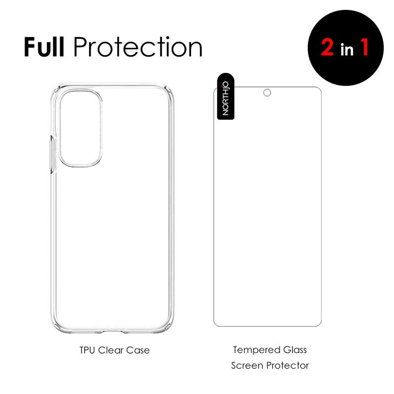Richten Sie den Schutz auf beiden Seiten, vorne und hinten, ein und schützen Sie Ihr Samsung Galaxy S20 FE vor versehentlichem Herunterfallen, Stößen, Staub und Schmutz mit dem Northjo 2-in-1-Paket! Das Set enthält eine hochwertige und flexible TPU-Hülle und eine 0,3 mm ultradünne Displayschutzfolie aus gehärtetem Glas mit 9H-Härte!
