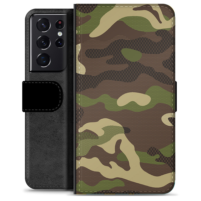Samsung Galaxy S21 Ultra 5G Premium Schutzhülle mit Geldbörse - Tarnmuster