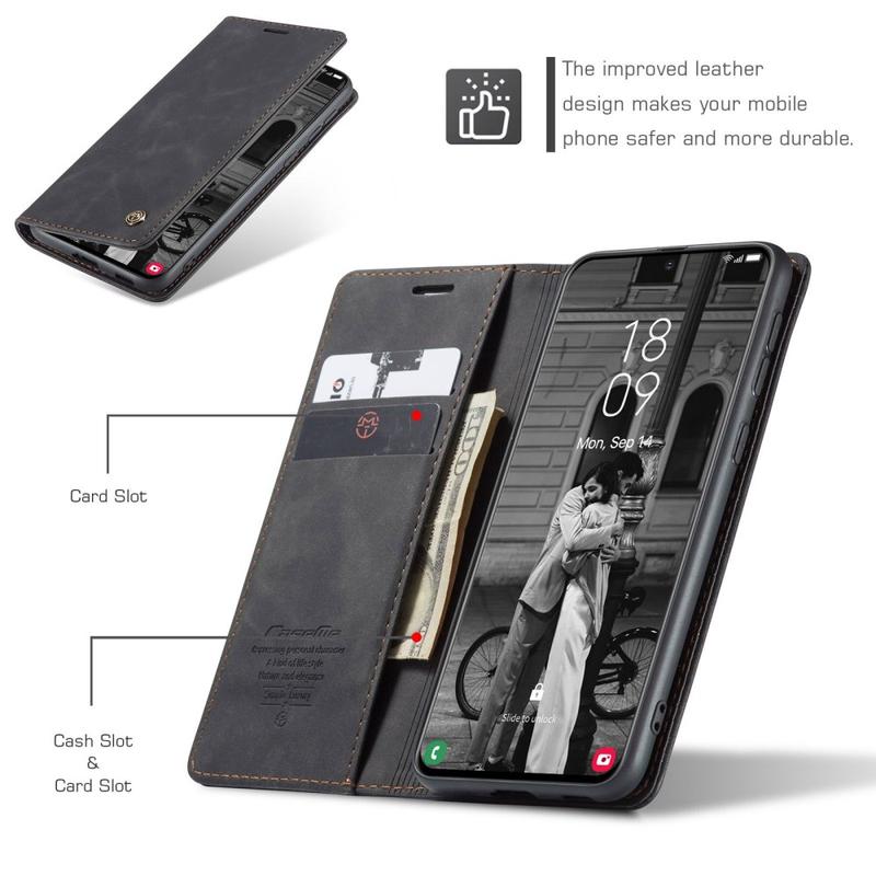 - Eingebaute Magnete halten die Caseme 013 Series Wallet-Hülle geschlossen