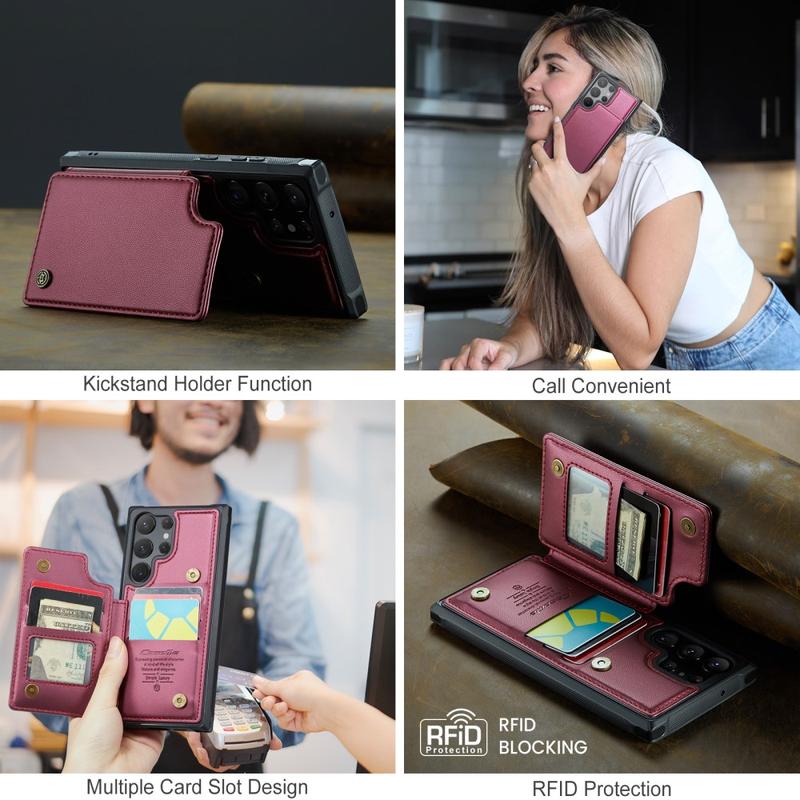 Samsung Galaxy S22 Ultra 5G Caseme C22 Hülle RFID Kartenetui - Rot