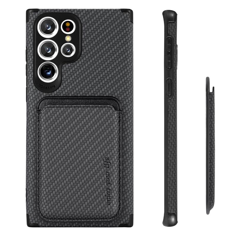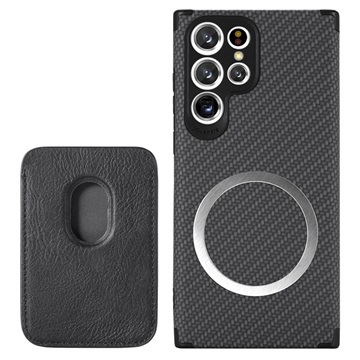 Magnetisches Cover mit Kartensteckplatz für Samsung Galaxy S22 Ultra 5G - Karbonfaser