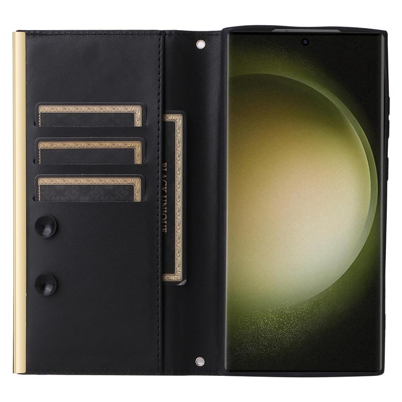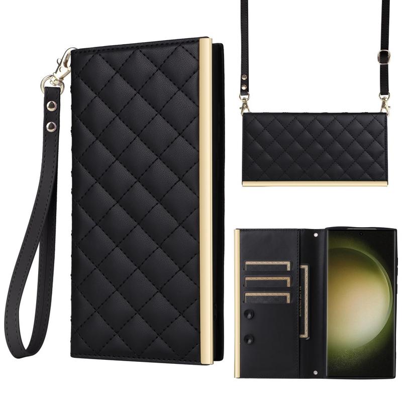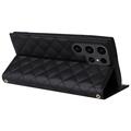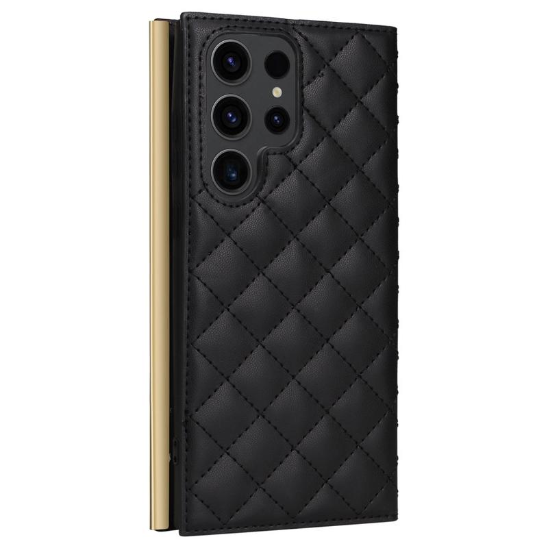 Samsung Galaxy S23 Ultra Luxus Gesteppte Wallet Case - schwarz