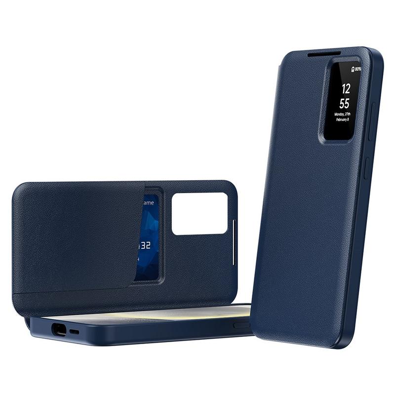 Samsung Galaxy S23 Smart Clear View Flip Hülle mit Kartenschlitz - Saphir