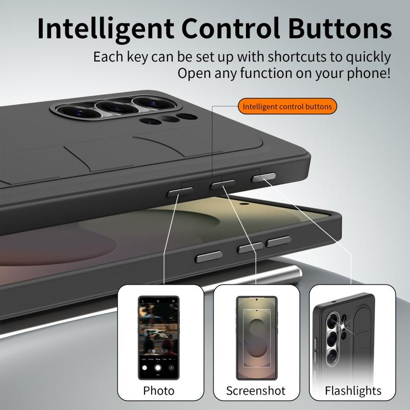 Smart Hybrid-Hülle mit Standgriff für Samsung Galaxy S23 Ultra - NFC anpassbare Shortcut-Tasten, Armband-Kickstand & Alu-Kameraschutz