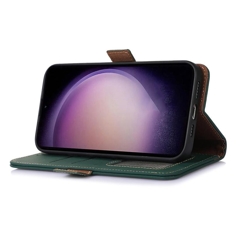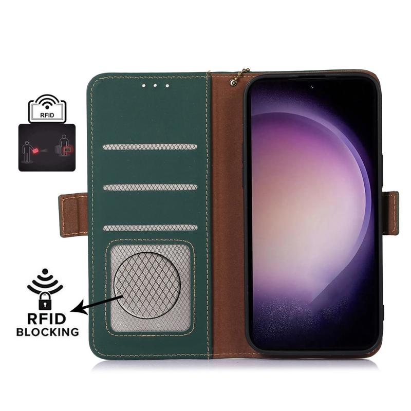 - Brieftaschen-Ledertasche mit RFID-Blockierungsschicht für Samsung Galaxy S23 FE