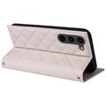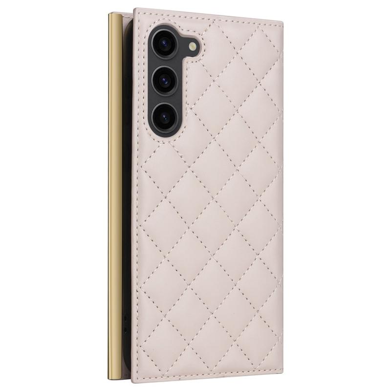 Samsung Galaxy S23 Luxus Gesteppte Wallet Hülle - Beige