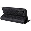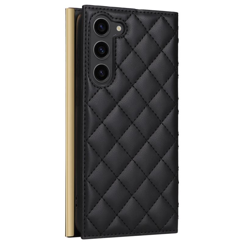 Samsung Galaxy S23 Luxus Gesteppte Wallet Hülle - schwarz
