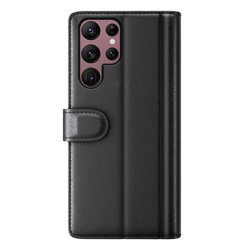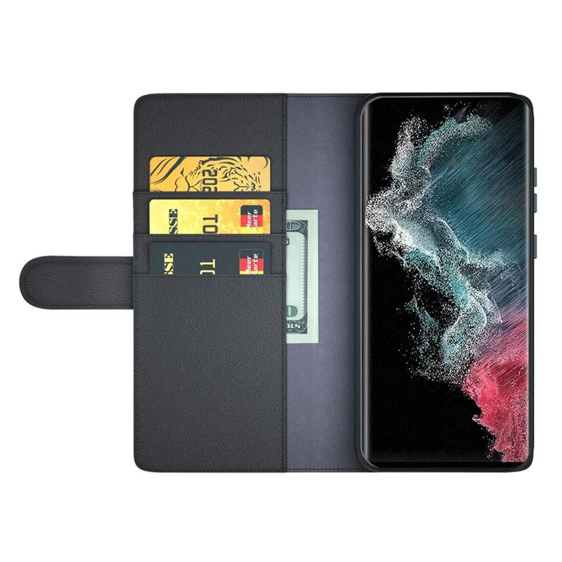 Samsung Galaxy S23 Ultra 5G Lederhülle mit Geldbörse und Ständer - Schwarz