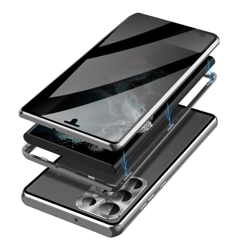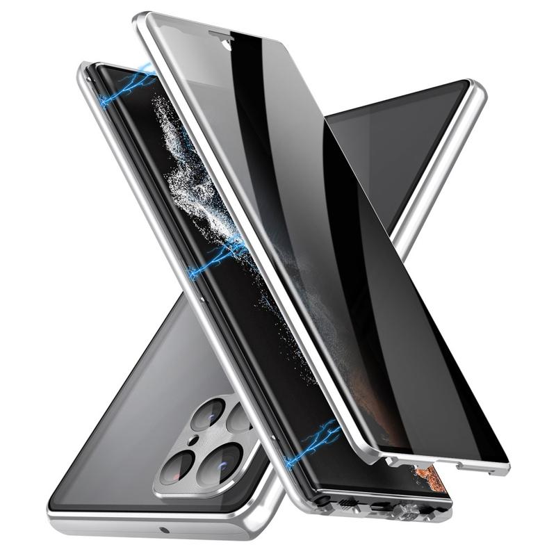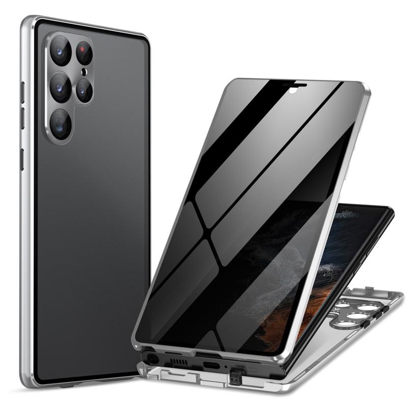 Samsung Galaxy S23 Ultra 5G Magnetisches Cover mit Panzerglas - Privat - Silber