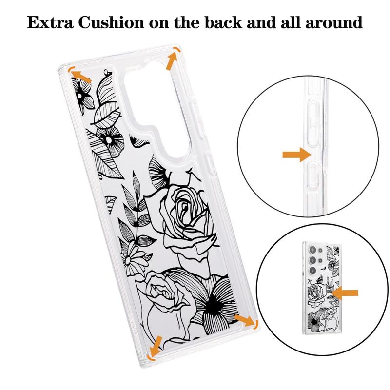 Schützen Sie Ihr Samsung Galaxy S23 Ultra stilvoll mit dieser modischen TPU-Hülle. Hergestellt aus weichem und flexiblem TPU-Material, kann dieser Fall frei verdreht werden und nicht leicht verformt, bietet einen komfortablen und sicheren Halt. Das exquisite Musterdesign bietet verschiedene Stile für unterschiedliche Bedürfnisse und sorgt dafür, dass Ihr Handy stilvoll und einzigartig bleibt. Die Airbag-Technologie sorgt für einen verbesserten Fallschutz, indem sie Stöße absorbiert und Ihr Handy vor Schäden schützt. Der erhöhte Rand auf der Rückseite schützt auch die Kameralinse vor Kratzern, während die empfindlichen Tastenabdeckungen ein reaktionsschnelles Drücken ermöglichen. Die Tasche lässt sich mit nur einem Schritt anbringen und abnehmen und ist somit praktisch und elegant.